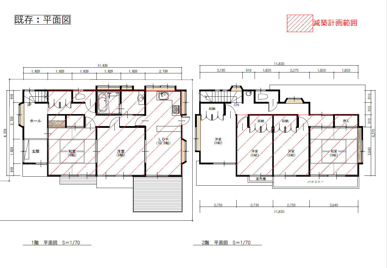今回、私たちがご提案したのは、凸凹している建物を小さく「減築」して構造を整え、高断熱と自然素材で設える性能向上リノベーションでした。